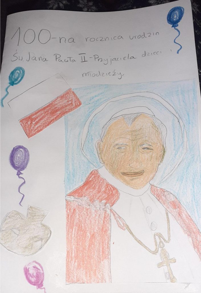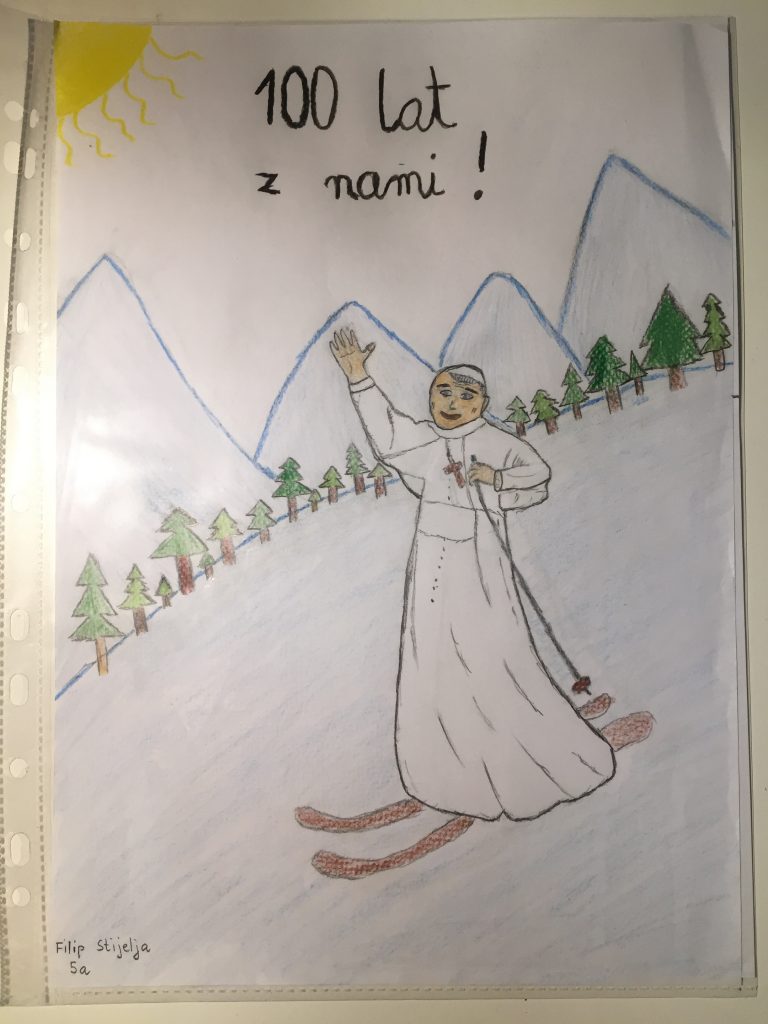 Otrzymaliśmy drogą elektroniczną 50 pięknych, kreatywnych i bogatych artystycznie prac, dzięki którym dzieci i młodzież włączyły się w obchody 100.rocznicy urodzin Wielkiego Polaka.