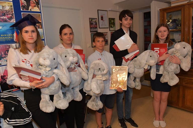 3 czerwca 2020r. odbyło się Absolutorium 8 klasy. Uczniowie i rodzice przybyli do biblioteki szkolnej na Fridhemsplan o godz. 18.30. Absolwenci otrzymali wspaniałe birety i rozetki, które pięknie komponowały się z ich uroczystymi strojami. Spotkanie rozpoczęliśmy od rozdania świadectw i zaproszenia wszystkich do dalszego etapu edukacji: do liceum. Wręczono nagrody za 100 % frekwencję, bardzo dobre wyniki w nauce oraz za wzorowe wyniki w nauce i 100% frekwencję w ciągu 8 lat. Następnie obejrzano teledysk pamiątkowy przygotowany specjalnie na tę okazję. Wspomnieniom przy słodkim poczęstunku zorganizowanym przez rodziców nie było końca. Odwiedziła nas również Pani Kierownik Małgorzata Malon, która przed laty była wychowawcą absolwentów. Ukoronowaniem wieczoru było wręczenie nagród Ambasadora Polski w Szwecji, które wręczył Konsul Maciej Zamościk za wybitne osiągnięcia w nauce, udział w licznych konkursach szkolnych i poza szkolnych, dumne reprezentowanie szkoły i działanie w SU oraz 100% frekwencję przez cały etap edukacji w szkole podstawowej. Z klasy 8 nagrody otrzymały 3 uczennice: Julia, Łucja i Martyna. Ten wieczór okazał się bardzo wzruszający, co bardzo dobrze uwiecznił na zdjęciach tata naszych uczniów Krzysztof Marianiuk.
